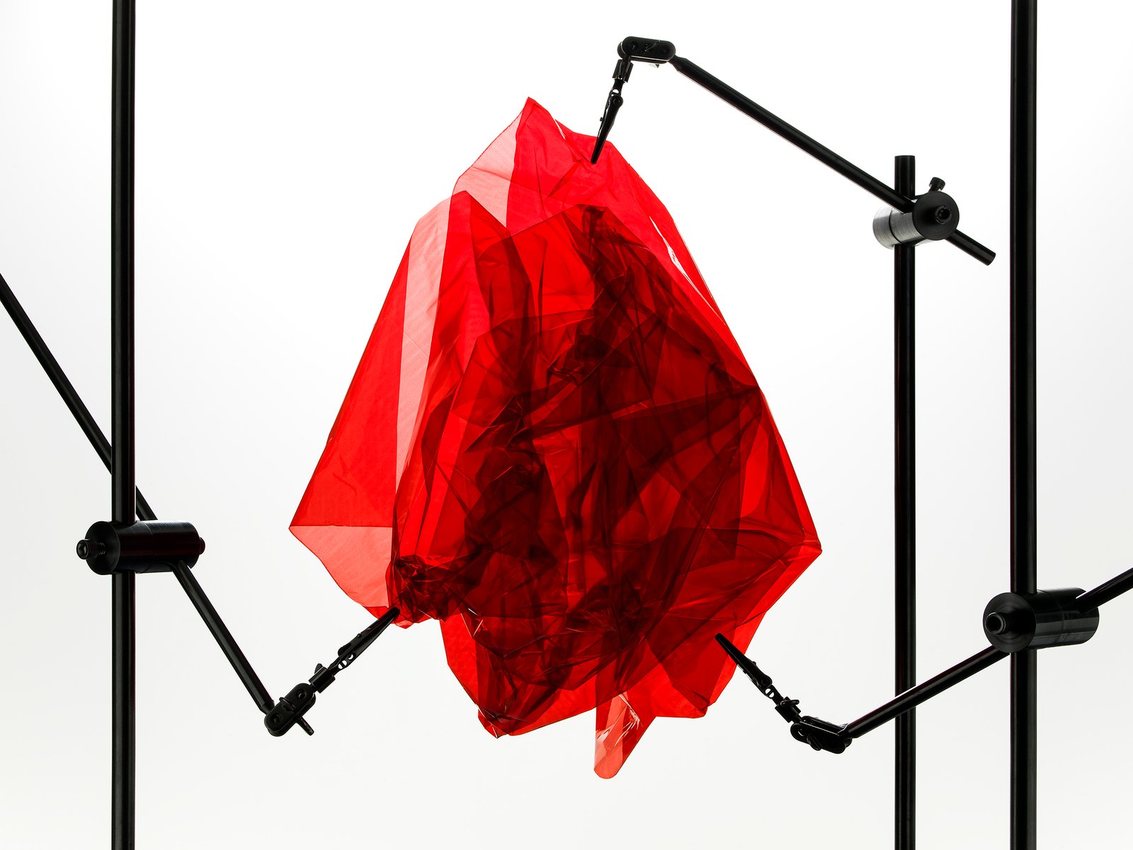 Including precision instruments in the pictorial space of his photographs, Torres assigns objecthood to the affective experiences. The suspended, or sometimes levitating state of polymers of different densities representing basic emotions makes them appear separated not only from whoever is experiencing them but also from any context, or possible triggers that caused them. Represented emotions exist only in the context of the study that Torres conducts, affecting their positions, folds, and creases, and thus reversing the roles, from being affected to being the one who affects.